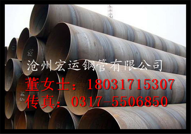 沧州宏运钢管有限公司是一家以钢管、管件生产、销售、出口为一体的专业化企业。我公司主要产品有:无缝钢管(热轧、冷拔);螺旋钢管;直缝钢管;热扩钢管;大口径厚壁钢管;合金钢管。螺旋钢管执行标准:gb/t9711.1 9711.2 sy/t5037 5040 aptspec 5l。