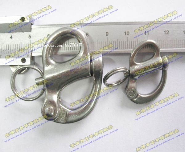 (4)弹簧卸扣分为:固定弹簧卸扣,圈式旋转弹簧卸扣、叉式旋转弹簧卸扣