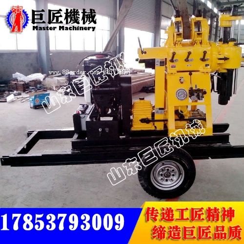 三、【xyx-130轮式水井钻机】技术参数钻孔深度130m开孔直径220mm终孔直径75mm钻杆直径50mm钻孔倾角90°~75°钻机重量560kg立轴立轴转速142 285 570r/min立轴行程450mm卷扬机单绳起重量1600kg单绳提升速度0.41 0.82 1.64m/s卷筒直径 140mm钢丝绳直径13mm钢丝绳容量27m泥浆泵类型卧式单缸双作用排量 配柴油机/电机95/77l/min压力1.2mpa工作压力0.7mpa进水管直径30mm出水管直径20mm三角带b1575mm 山东巨匠机械有限公司专业生产轮式水井钻机,主要型号有:xyx-130、xyx-180、xyx-200、xyx-3、kqz-150d、kqz-200d。
