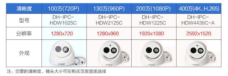 4mp:368元/件 720p:165元/件 960p:215元/件 1080p:265元/件