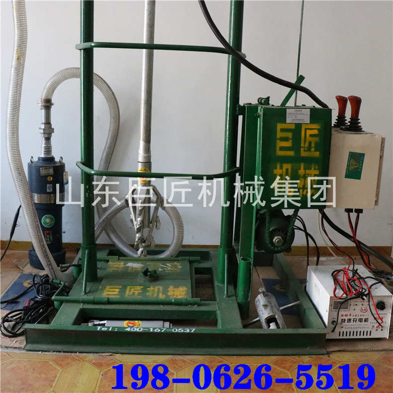 开孔300mm,钻深30m。水泵压力适应钻井深度120m输入电压220v钻井最大开孔直径250~300mm配置总功率4.55kw驱动电机功率1.25kw提升电机功率1.1kw最大提升重量750kg潜水泵电机功率2.2kw(扬程46m,流量12m3/h)驱动钻杆旋转速度150r/min(空载)工作台占地面积1㎡井架最大高度3.5m分解后单件最大重量小于40kg分解后单件最大长度2m发货箱体积11100*450*450mm发货箱体积2670*670*450mm整机重量(不含钻杆)200kg钻杆规格直径42mm:2米/根,5.5公斤/根操作人员数2人山东巨匠机械集团有限公司专业供应人力打井机、两相电打井机、三相电打井机、汽油打井机、柴油打井机、液压水井钻机、气动打井机,欢迎来电洽谈业务!