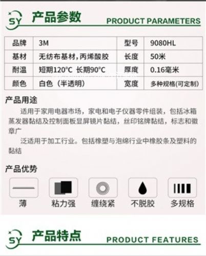 用途:3m9448a在环保方面符合rohs法规要求,经过ul环保认证等特征。广泛用于加工行业,包括橡塑行业中橡胶条及塑料的粘结,适用于冰箱蒸发器及控制面板粘结、铭牌粘结、家用电器、汽车、手机、海棉、纸品、玩具和电子仪器零件组装。