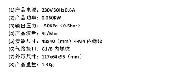 (4)输出压力:+50kpa(0.5bar)