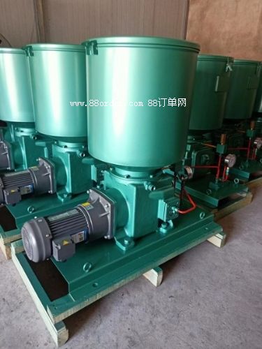 干油智能润滑系统的动力源,润滑油经过泵站向主油管、向电控分油箱、向支油管和润滑点输送润滑脂。油路辅助装置(过滤器、溢流阀、调压阀,压力表等), 润滑泵只在给油时启动,其启停由plc控制;主/备两台互为备用,当其中的一台油位低时,自动切换到另一台,同时为油位低的油泵进行自动补油。