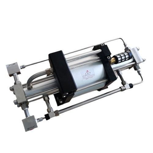 jgd系列相较于jg系列气体增压泵,前者双头单作用,后者单头单作用。同样在具备被增压介质初始气压较高的条件下,区别在于jgd系列不光输出压力高,输出流量也更大。同jg系列一样,jgd系列气体增压泵采用普通压缩空气驱动,安全方便,不会产生热、火星等危险;密封性能好,无油润滑,导向连接套装置用于将气体压缩缸与空气驱动缸分离,保证被压缩介质不被污染及稳定压力的输出能力。