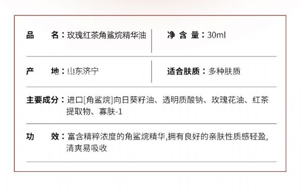 玫瑰红茶角鲨烷精华油OEM贴牌护肤品定制