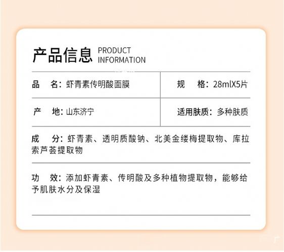 虾青素传明酸面膜贴牌代加工护肤品定制