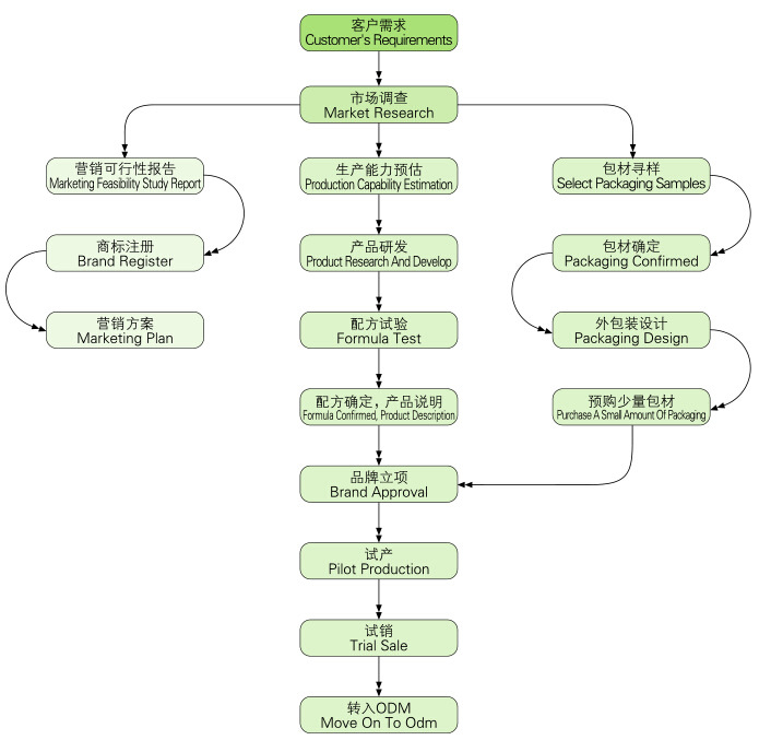 灵活的合作方式:oem、odm、obm(包工包料、来料加工、来配方加工等)