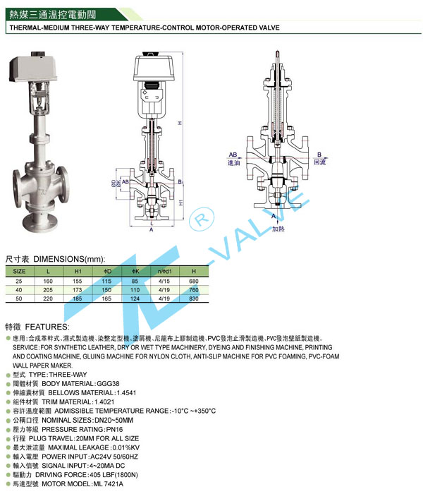 热媒三通温控电动阀 |tc品牌|上海首龙阀门有限公司 产品型号:tckzf 产品口径:dn25-dn50 产品压力:1.6mpa 产品材质:不锈钢|铸钢 使用介质:水、油品、气体等
