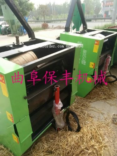 保丰牌秸秆自动捡拾圆捆机;集捡拾、打捆于一体、体积小、重量轻、结构紧凑、操纵利便工作效率高、功课效率每小时5-10亩,可尾随于联合收割机后配套使用。机械由捡拾机构、卷压滚筒机构、扎线机构、放捆机构等部分构成。