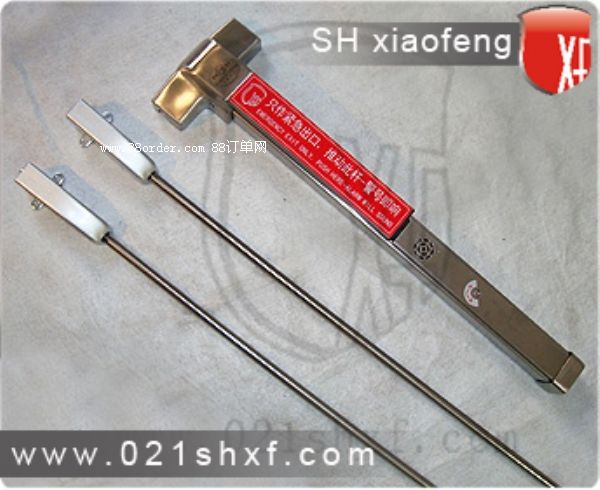本产品采用不锈钢材料制造而成,表面拉丝,结构大方简朴。使用方便,不易省坏且电池使用周期长。报警标示以中英文方式显示(长度以消防锁推杆杆长为准),红底白字,采用2.5mm厚的塑料板刻字制成,固定至推杆表面。