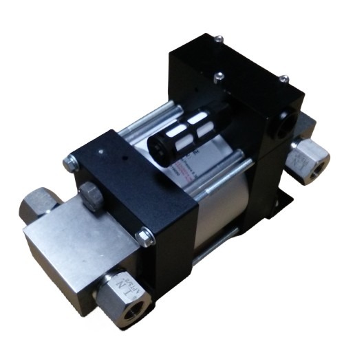 利用压缩空气驱动大活塞从而产生小活塞端的高压液压油。