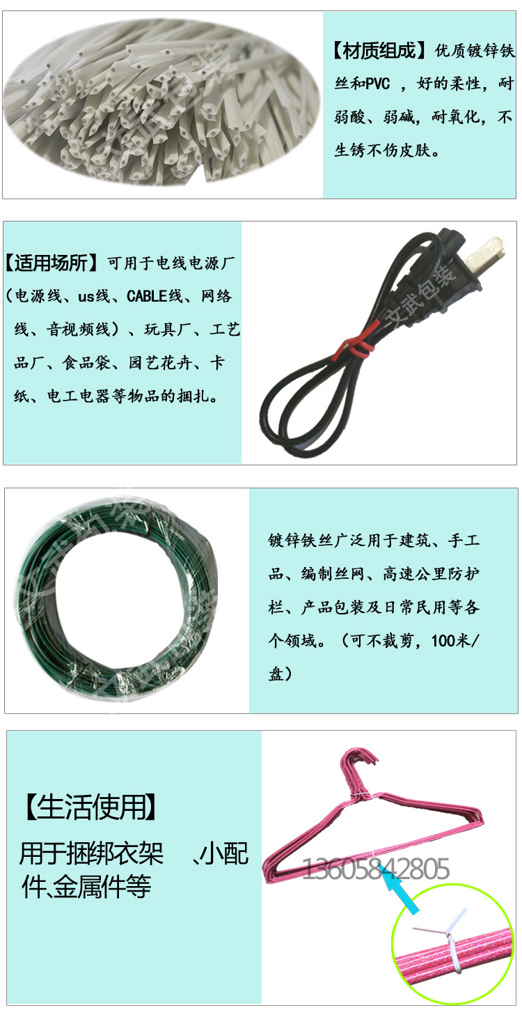 掌柜推荐铁扎丝包塑环保镀锌线 包胶扎带绑五金铁芯红塑料扎线带