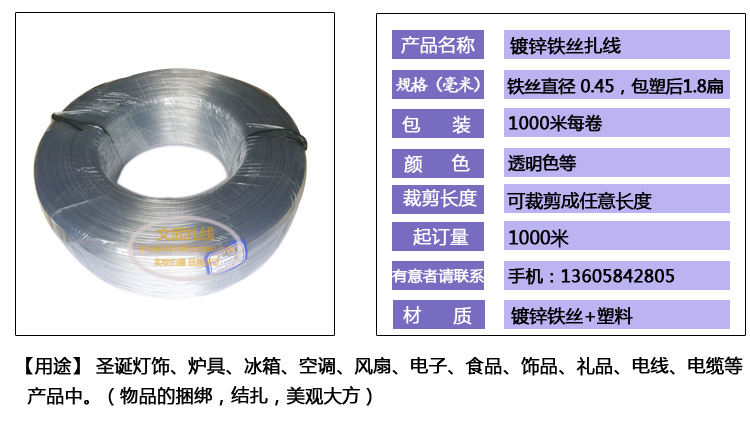 皇冠特价透明扎线 塑料铁扎带玩具pvc绑线包胶扎丝厂餐具绑丝