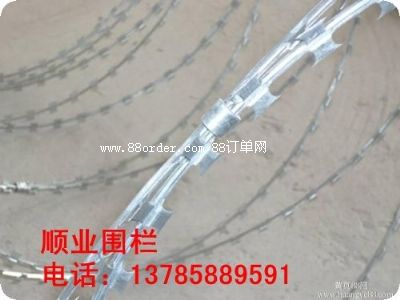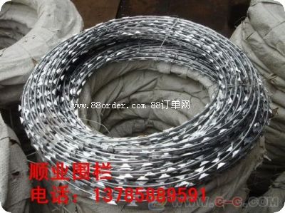 长度和直径可依客户要求制作。直线型刀片刺网是一种新型防护网。该产品具有吓阻效果好.美观.施工便利.经济实用等优异特点。主要用于园林公寓.机关单位.监狱.哨所.边防等的圈禁防护。刀片刺网由锐利尖角镀锌钢板或不锈钢薄板做刀片,高张力钢丝做芯线组合而成的阻绝器材。由于刺网造形独特不易触摸,因而能达到极好的防护隔离效果。