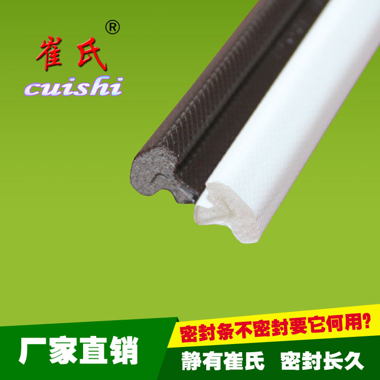 包覆式密封条,在防盗门、铜门、不锈钢门的金属门上的黏贴效果极佳,可适应户外四季温度的变化,在操作安装上可节省50%的生产效率