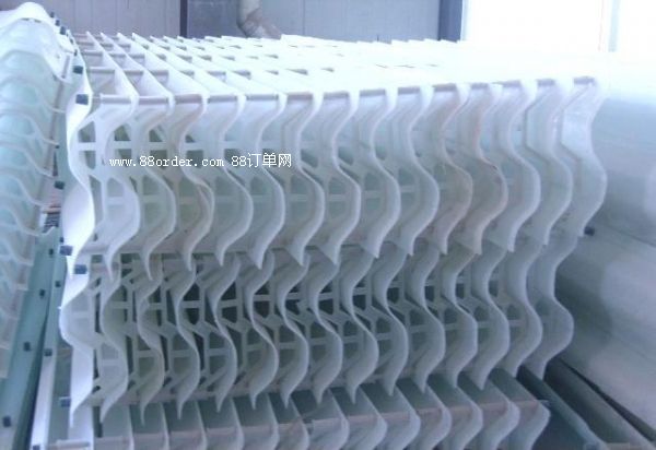 本产品叶片采用最新复合材料制作而成的,高强度、耐酸、耐碱、耐高浓度氯离子、耐磨、表面光滑等优点。并能在150℃烟气温度工况下连续使用,当脱硫除尘系统出现故障,如双碱法或其他脱硫工艺管道出现结垢或是循环泵出现故障,使吸收塔内的烟气温度急速升高,如采用pp(聚丙稀)除雾器就会出现整体或者局部坍塌,本产品最大能承受150℃烟气温度连续使用,即使脱硫系统出现故障烟气温度升高,本产品除雾器也能正常使用,不会影响整个脱硫系统正常运行。